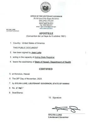The Hawaii Lieutenant Governor in Honolulu issues Hague Apostilles and Certificates of Authentication to certify Hawaii public documents, including Hawaii marriage certificates and other vital records, Hawaii Certificates of Good Standing, Driving Records, court documents and documents certified by a Hawaii notary public.