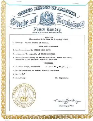 • Apostille New Orleans and Louisiana death, marriage and birth certificates