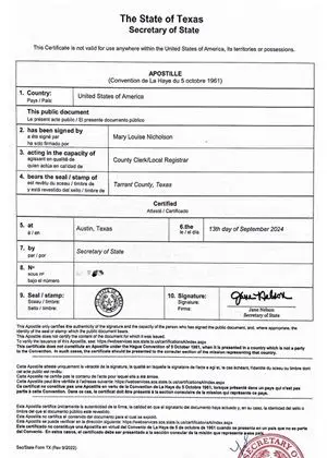 Other documents are eligible for an apostille stamp, including certificates of no impediment to marriage and single status, court and probate documents, medical certificates and driving licence certificate, when issued and/or certified by a Texas official or notary public.